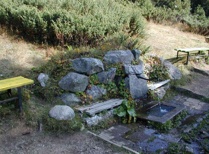 le paysage panoramique des clichés et la beauté sauvage de la nature bulgare! - mais il s'agit somme toute de la qualité standard routière que l'on retrouve dans pratiquement tous les pays montagneux. Enfin, une photo un peu marginale par rapport au sujet (quoi que...) Une petite aire de repos le long de la route, un coin ombragé qui permet de se protéger quelque temps des ardeurs du soleil estival, quelques bancs pour accueillir le randonneur fatigué ou lui permettre de reprendre son souffle, et puis une source d'eau fraîche. Pourquoi ne pas profiter de l'un des nombreux trésors dont la Bulgarie regorge (le pays est riche en sources et les stations thermales y sont également nombreuses, tout un éventail de cures y sont possibles). Qui n'a jamais goûté et apprécié la fraîcheur et la simplicité de l'eau après un effort plus ou moins prolongé, comme un cadeau divin?