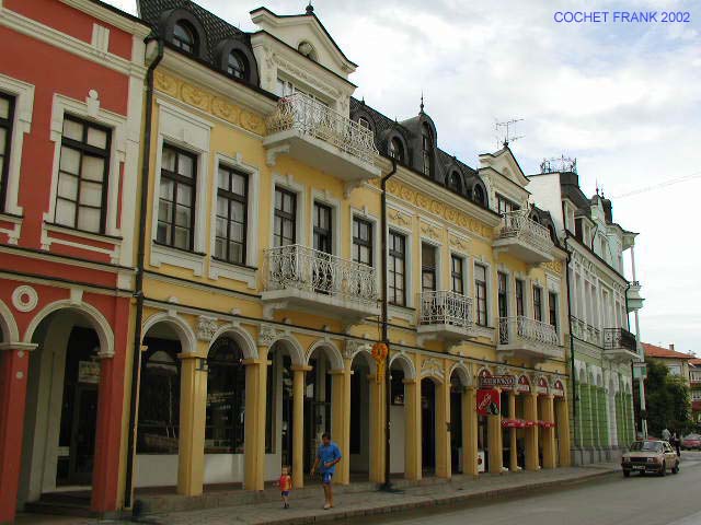 Nous allons maintenant nous éloigner progressivement de la "zone verte" de Lovetch et des trésors qui s'y trouvent pour nous diriger vers la civilisation. Nous allons traverser le pont, incendié en 1929 et reconstruit quelques années plus tard, pour déambuler dans la partie urbaine. Il faut savoir que Lovetch n'est pas, comme nos premières pages sur le sujet auraient pu le laisser croire, un bled perdu, sympathique et même bucolique, mais relativement proche du gros bourg. La réalité est très différente car Lovetch possède aussi son animation, ses centres commerciaux, une forte activité artistique (Jules Verne y fut notamment particulièrement bien représenté lors de la fête des lilas, Andreev et Manev pour les artistes bulgares y exposent fréquemment dans la galerie de la ville) son hôpital psychiatrique public (pavillon fermé pour personnes déclarées pénalement irresponsables), un hôpital pénitentiaire et... une très bonne équipe de football, le FC.Liteks (ou Litets) de Lovetch!